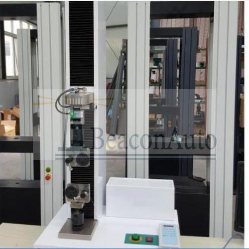 復合膜袋穿刺試驗機產品特點: 1、采用高精度、全數字調速系統及精密減速機, 驅動精密絲杠副進行試驗,實現試驗速度的大范圍調節, 試驗過程噪音低、運行平穩。 2、萬向節采用十字插銷結構,而且具有擺角限制功能, 一方面便于試樣夾持,保證試驗同心度, 另一方面很好的消除了不規則試樣對傳感器的影響。 3、觸摸鍵操作方式,液晶顯示器實時顯示。 顯示界面可顯示試驗方法選擇界面、試驗參數選擇界面、試驗操作及結果顯示界面和曲線顯示界面,方便快捷。 4、可實現試樣裝夾時橫梁快慢升降調整,具有過流、過壓、過載等保護裝置。 5、選配微機接口,可外接微機實現試驗過程的控制及數據的存儲、打印。 復合膜穿刺試驗機技術參數: 主要技術指標 | 型號 | 復合膜穿刺試驗機 | 規格 | WDC系列 | 試驗力 | 200N | 300N | 500N | 1000N | 2000N | 結構形式 | 單臂式 | 壓縮空間 | 600mm | 負荷測量范圍 | 最大負荷的2%-100% | 負荷測量精度 | 優于示值的±1% | 橫梁位移速度 | 0-500mm/min無級調速 | 速度精度 | ±1% | 外形尺寸(mm) | 530*266*1450 | 夾具配置 | 穿刺夾具一套(根據用戶試樣要求) | 電源 | 單相交流220V±10%V | 重量(kg) | 60kg |