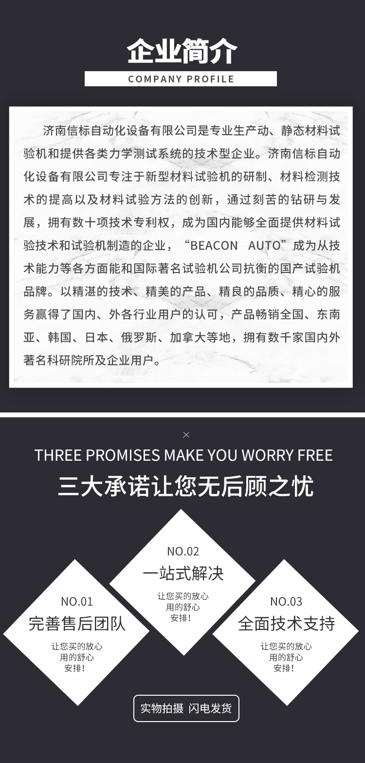 | 濟(jì)南信標(biāo)自動化設(shè)備有限公司主要生產(chǎn):動靜態(tài)萬能疲勞試驗機,接骨板彎曲試驗機,縫合線拉伸疲勞試驗機,髖膝關(guān)節(jié)磨損試驗機,電子萬能試驗機、液壓萬能試驗機、巖石三軸、四軸,電液拉力試驗機,材料試驗機,高低溫蠕變,高低頻疲勞,拉伸、扭轉(zhuǎn)、杯突等二十多個系列兩千多個的品種。 |