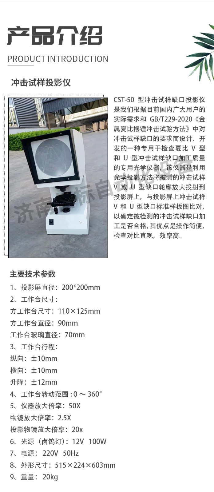 CST-50 沖擊試樣缺口投影儀 夏比U型V型實驗機測量器 沖擊試驗機