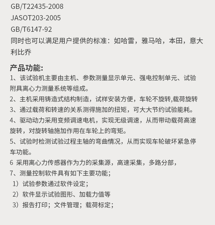 當前位置:首頁 > 產品中心 > 車輪旋轉彎曲疲勞試驗機 自行車 電動車 摩托車 輪轂離心旋轉測試機
