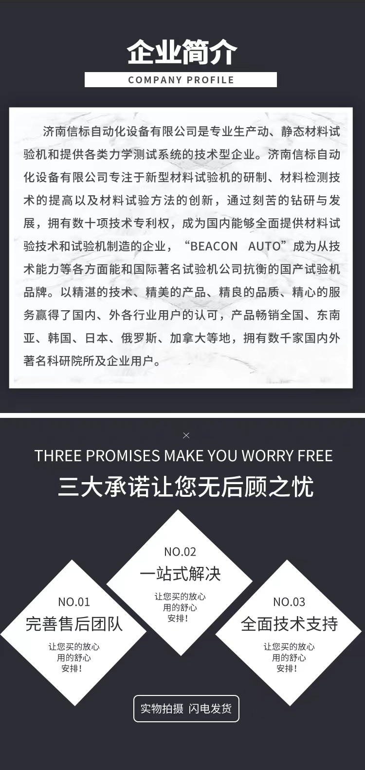 濟南信標自動化設備有限公司主要生產:動靜態萬能疲勞試驗機,接骨板彎曲試驗機,縫合線拉伸疲勞試驗機,髖膝關節磨損試驗機,電子萬能試驗機、液壓萬能試驗機、巖石三軸、四軸,電液拉力試驗機,材料試驗機,高低溫蠕變,高低頻疲勞,拉伸、扭轉、杯突等二十多個系列兩千多個的品種。